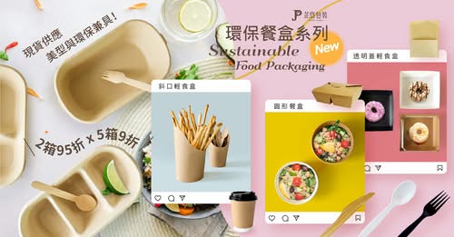 牛皮紙餐盒、植纖餐盒、輕食盒、紙杯、麵包袋等,提升餐點整體包裝品質。