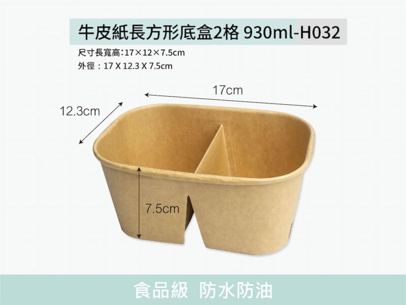 H032牛皮紙長方形底盒2格930ml